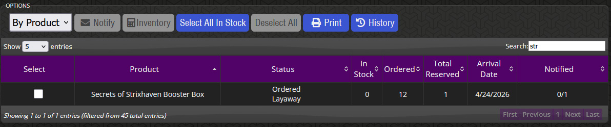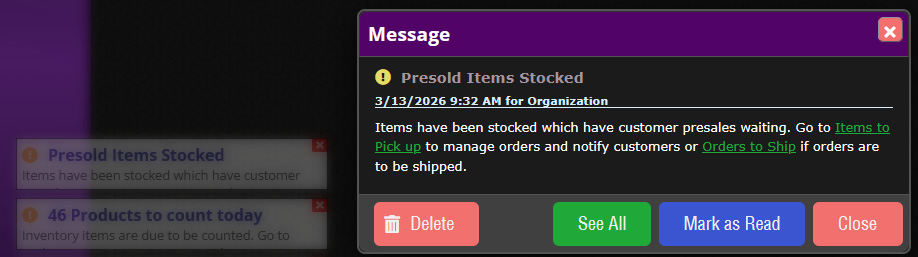 This is also a handy tool for doing special orders with customers. If a customer asks for an item you don’t typically carry, but you want to special order it for them, you can create a new product in the system and do a pre-sale to the customer for that product. Later, once you’ve ordered it and it arrives, you can use the same procedure for tracking and notifying the customer when it’s ready.