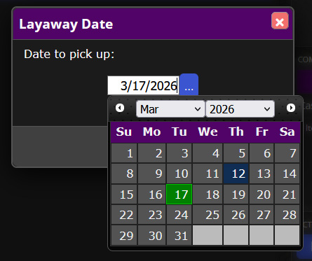 Once you’ve tendered enough payments towards the order to cover the deposit, you’ll be able to click Hold Items and choose a date that the customer intends on coming back to pick up their item(s).