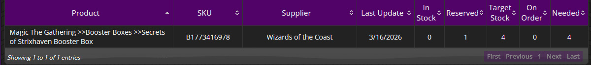 It’s also common to find this Inventory Control pop-up by going to Tasks > Reorder List. There, you will see the product listed, along with how many are reserved for customers as the result of a product pick-up, how many you currently have on order, and, if you haven’t ordered any yet from your vendor, how many you currently need.